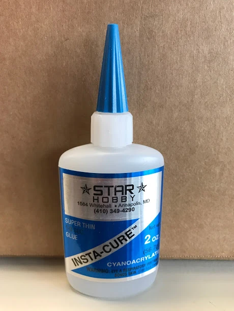 Insta-Cure™ has a water-thin viscosity that wicks deep into joints by capillary action and cures in a matter of a few seconds. Surfaces to be bonded must be tight fitting and should be held together while you apply the CA around the edges of the seam. At the moment CAs cure, they give off a vapor that can irritate the nose and eyes, so be prepared. Thin CAs work very well on balsa since they penetrate into the wood and form more than just a surface bond.