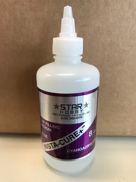Insta-Cure+™ is a higher viscosity CA for loose fitting joints in which the adhesive must bridge gaps. Normally, the thicker CA is applied to one surface and then the parts are held tightly together for about 5 to 15 seconds. For large surface areas, including those with close fitting joints such as laminations, INSTA-CURE+ ™ should also be used. To prevent premature curing, don’t spread the glue into a thin film. Lay down a serpentine bead with about 1″ separations on one surface, then assemble the parts, letting the pressure spread the CA out.