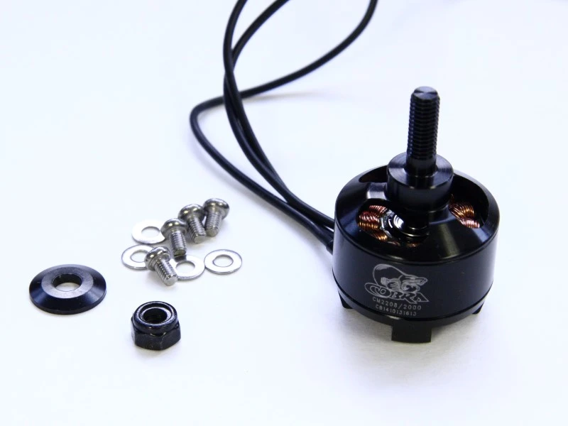 Something to consider if you’re looking at this motor. As a ‘large’ 2000kv motor it has a relatively easy time with most 5″ and 6″ props. In most cases there is no additional thrust when compared to the the Cobra 2204 1960kv motor (and no efficiency gain either). The only time the benefit of this larger motor comes into play is with the 6×4.5 prop or larger (and perhaps the new 5×4.5 – testing needed). If you don’t plan on using that prop, you’ll probably have your needs met by the smaller, lighter 2204 model. The weight savings will increase agility and crash survival.