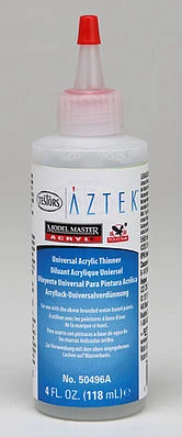 Aztek’s Universal Airbrush paint thinner allows you to thin acrylic paints for spraying through an airbrush. Convenient 4 oz. bottle with red cap tip for easy pouring into any size container. Works with all Testors, Aztek, & Model Master Acrylic paints.